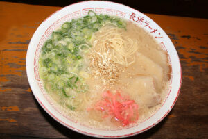 The most famous dish served at Fukuoka yatai is Hakata-style tonkotsu ramen. This variety is known for: