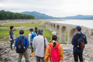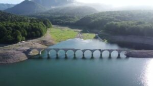 Today, it stands as a symbol of impermanence — a man-made structure slowly being reclaimed by nature. Depending on the water level of Lake Nukabira, the bridge can be completely submerged or dramatically revealed above the surface.