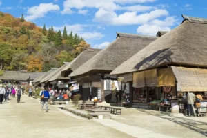 Hidden in the mountains of Fukushima Prefecture, Ōuchi-juku (大内宿) is a beautifully preserved Edo-period post town that transports visitors back to the days when samurai, merchants, and travelers journeyed along the ancient roads of Japan. With its thatched-roof houses, dirt roads, and surrounding countryside, Ōuchi-juku offers a rare glimpse of old Japan untouched by time — one of the country’s most picturesque and culturally significant destinations.