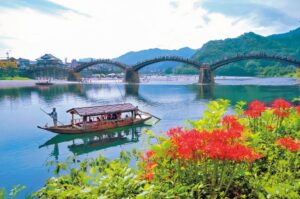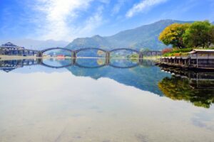 Kintai Bridge in Iwakuni City, Yamaguchi Prefecture, is one of Japan’s most celebrated historic bridges and a masterpiece of traditional wooden architecture. Known for its elegant sequence of five wooden arches stretching across the Nishiki River, the bridge attracts visitors from around the world for its beauty, craftsmanship, and the dramatic scenery that surrounds it in every season.