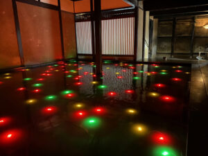 Kadoya with an LED installation floating over water