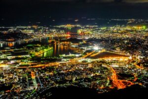 Mount Sarakura is officially recognized as one of Japan’s most beautiful night-view spots. From the observation deck, visitors can see: