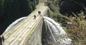 One of the most famous attractions at Tsūjun Bridge is the scheduled water release event. During these demonstrations, large volumes of water are forcefully discharged from the bridge’s stone channels into the valley below.