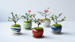 Pine, maple, juniper, and cherry bonsai