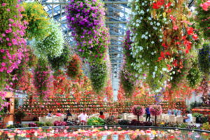 A highlight throughout much of the year is the indoor Begonia Garden. This greenhouse displays large, vividly colored begonias suspended from ceilings and arranged in carefully curated floral installations. The climate-controlled environment ensures blooms even during colder months.
