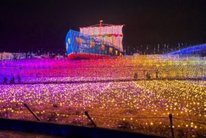 Nabana no Sato is internationally known for its winter illumination, typically running from autumn to spring. Millions of LED lights transform the park into themed light landscapes.