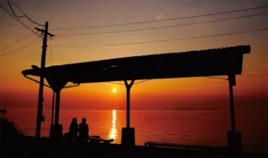 The station faces west toward the Seto Inland Sea, making it one of the best sunset viewing points in Shikoku. Many photographers and tourists arrive specifically in the late afternoon to capture the golden glow on the sea and the silhouette of the platform.