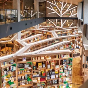 Inside, the library provides wide reading tables, quiet study rooms, and open browsing spaces. Seating is arranged to support both individual study and group research, while maintaining a peaceful environment.