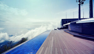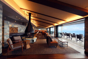Its design blends perfectly with the surrounding nature, providing a relaxing atmosphere at the mountaintop.