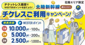 JR西日本では、北陸エリア限定「北陸新幹線チケレスご利用キャンペーン」を2025年10月1日(水)から開催します。