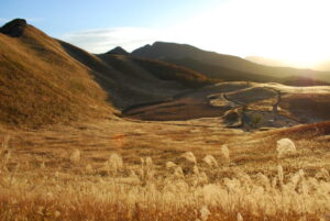 It’s especially famous for its silver pampas grass fields (susuki) that turn golden under the autumn sunset, creating one of the most breathtaking seasonal landscapes in Japan.