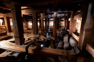 Built using a combination of massive wooden beams, interlocking joints, and stone foundations — all without nails.