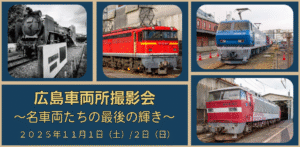 JR貨物では、「広島車両所撮影会」~名車両たちの最後の輝き~を 2025年11月1日(土)、2日(日) に開催します。