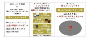 対象店舗おすすめの地酒や「JR東日本びゅうダイナミックレールパック割引クーポン」が当たります。