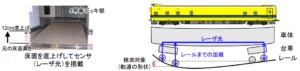 従来はレーザ光を通すために車体床面を底上げする必要があり、客室の天井高が低くなるため営業車に搭載不可でした。