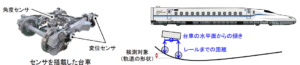 新システムは、レーザ光を使わず、1台車だけで軌道を測定可能。営業車両での検測を可能にしました(特許出願済)。