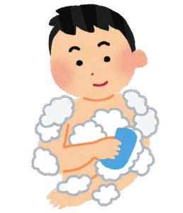 Wash & rinse thoroughly outside the bath. Use the shower area and soap to remove oils and dirt. This is required for everyone.