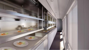 車内には、約70名の乗客に出来たての温かい料理を提供可能な“日本最大級の厨房車両”を設置。