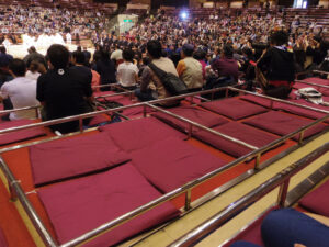 Box Seats (Masu-seki): Traditional tatami areas for up to 4 people. You sit on cushions on the floor — the most authentic way to watch, but also more expensive.