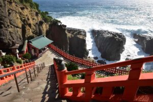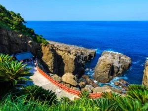 Udo Shrine is a stunning coastal Shinto shrine located in Nichinan, Miyazaki Prefecture on Japan’s southeastern coast. Perched within a natural cave along rugged cliffs overlooking the Pacific Ocean, Udo Shrine offers a dramatic combination of religious significance, scenic beauty, and cultural tradition.