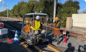 ポイントを含めた約200メートルの線路上を保線車両で走行体験。