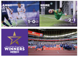 • トロフィーを掲げる選手たちの集合写真を掲出。
