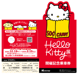 名鉄では、「Hello Kitty展 名古屋会場」の開催を記念し、記念乗車券の発売およびスタンプラリーの実施、ならびに特別装飾列車の運行を行います。