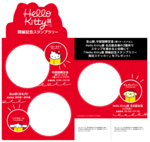乗車券の中面がスタンプラリー台紙となっており、以下の3カ所でスタンプを押印すると、「Hello Kitty展 開催記念スタンプラリー限定ステッカー」をプレゼントします。