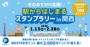 JR西日本は、関西エリアの駅や名所を巡るデジタル企画「駅からはじまるスタンプラリー in 関西」を2026年1月13日(火)から2月28日(土)まで開催します。