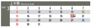時刻表スタイルカレンダー2026(3月はじまり)