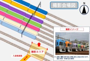 今回の撮影会では、井の頭線1000系の象徴ともいえる「レインボーカラー7色」を並べた状態で展示予定です。