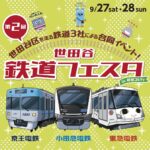 会場は井の頭線・富士見ヶ丘車両基地で1000系の“レインボーカラー7色”を並べて展示する特別企画となっているイベントです。