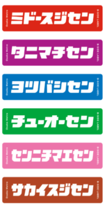 Osaka Metroの各路線名をポップなデザインで表現。