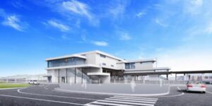 新駅舎は、屋根を積み重ねたデザインで、菊川市の特色である茶園・棚田・平野といった自然風景を表現しています。