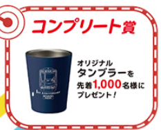- 3か所達成でクリアファイル、5か所達成でタンブラー