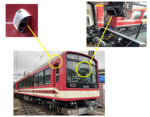 車両側面に側方カメラを設置し、乗務員室のモニターで確認できるようにします。