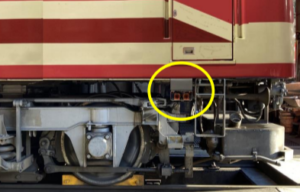 停車時に、連結間の床下から4言語で注意喚起放送を行う仕組みとなります。