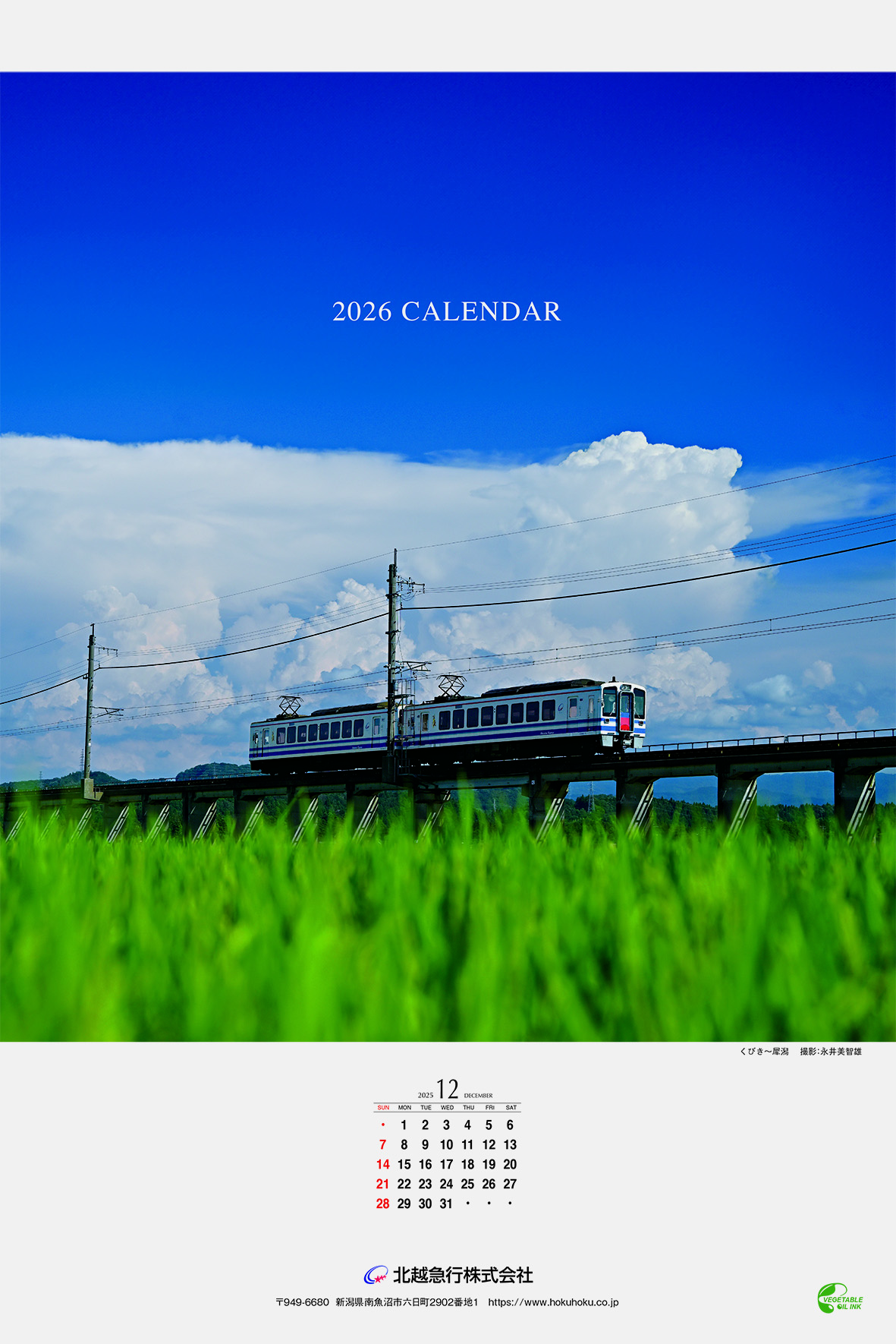 北越急行「2026年 ほくほく線カレンダー」10月13...