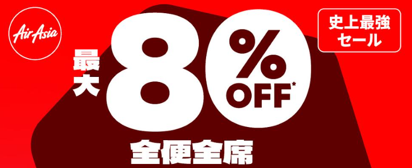 エアアジア 11,016円~「全便全席 最大80%オフ...