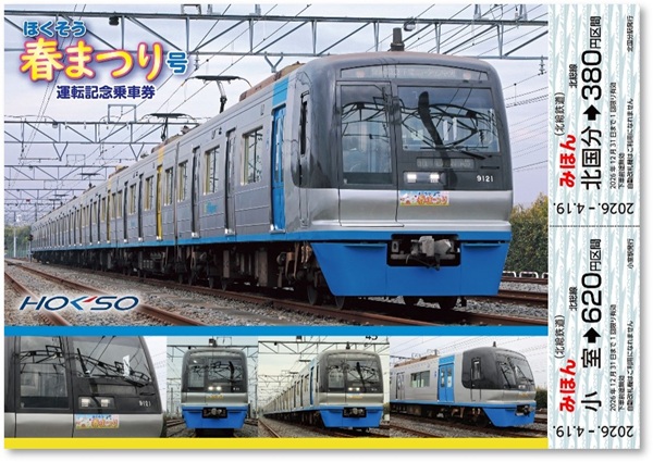 北総鉄道では、「ほくそう春まつり2026」に合わせて、「ほくそう春まつり号運転記念乗車券」を2026年4月19日(日)に発売します。 「ほくそう春まつり号」の運行を記念した限定乗車券で、専用ヘッドマー ...